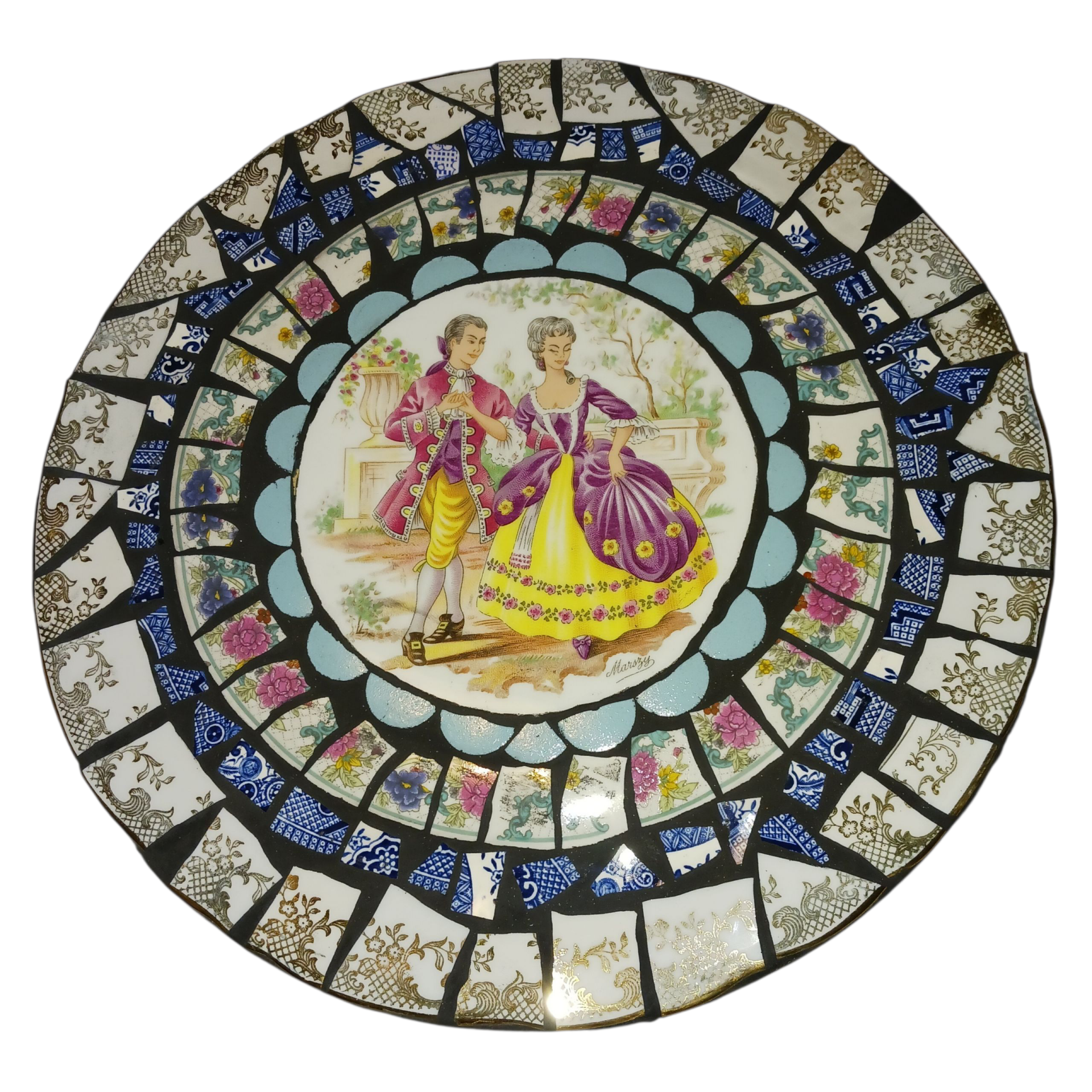 Support mdf bois de diamètre 30 cm, décor assiettes de Limoges et chinoise.