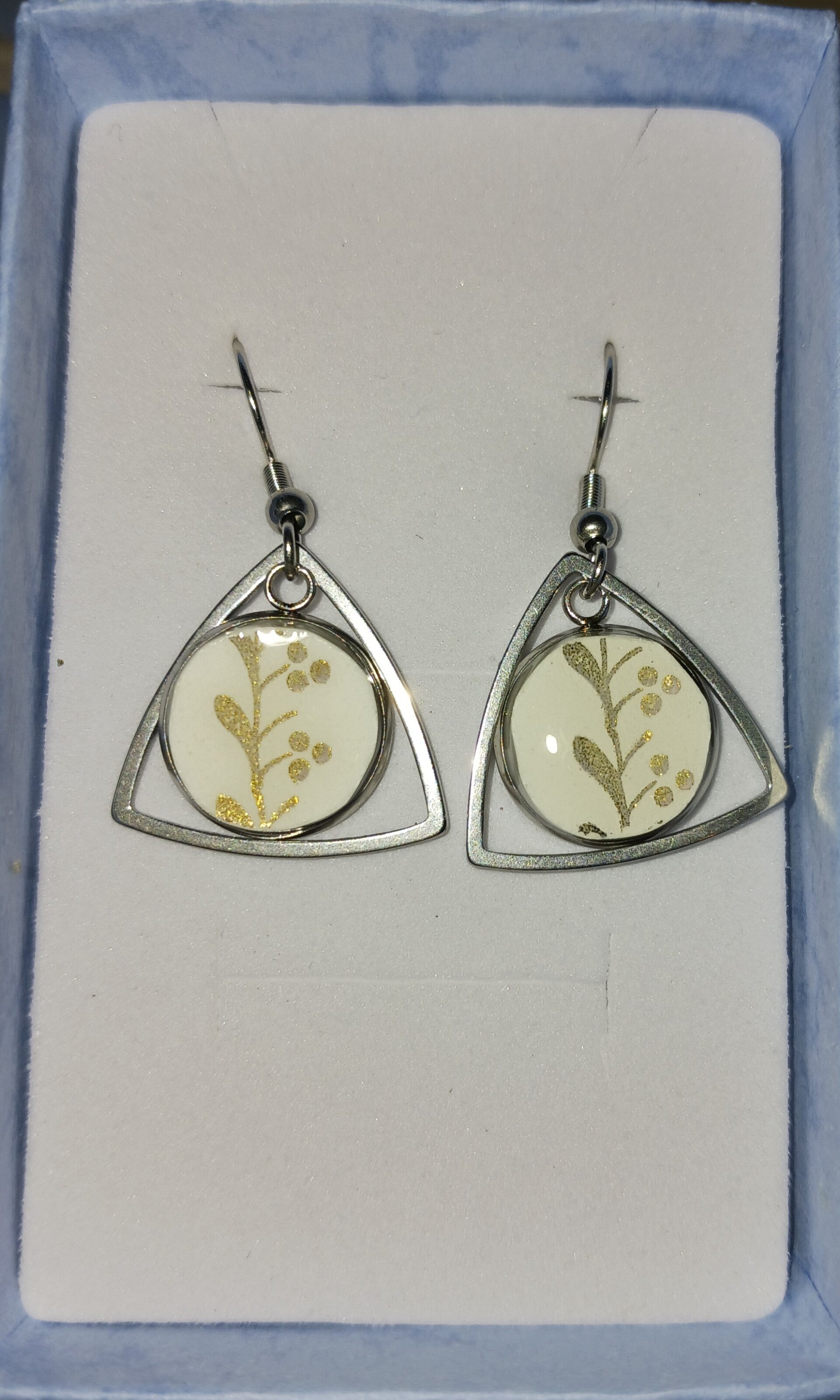 Boucles d'oreilles en acier inoxydable avec morceau de vaisselle recouvert de résine.